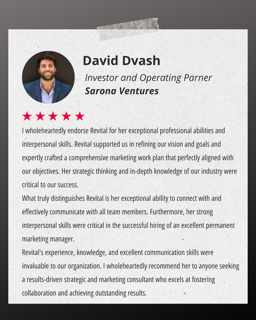 With experience across 100+ startups and companies in diverse industries, Revital brings a rare mix of strategic depth and operational execution. She has served as CMO in both a Shanghai-based company and a successful fintech startup, and held key roles in media (Keshet Broadcasting) and AI startup, managing operations, HR, and full P&L responsibility.